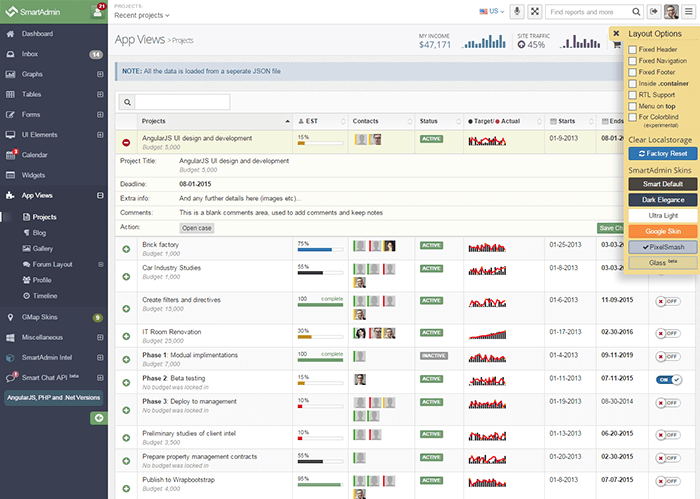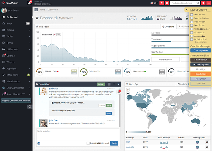 A StarterKit 7 gyönyörű beépített témával érkezik, hogy mindenki megtalálja a saját stílusát. Felhasználónként eltérő témák is beállíthatók. Próbálja ki a témákat a jobb oldali forgó fogaskerekekre kattintva!